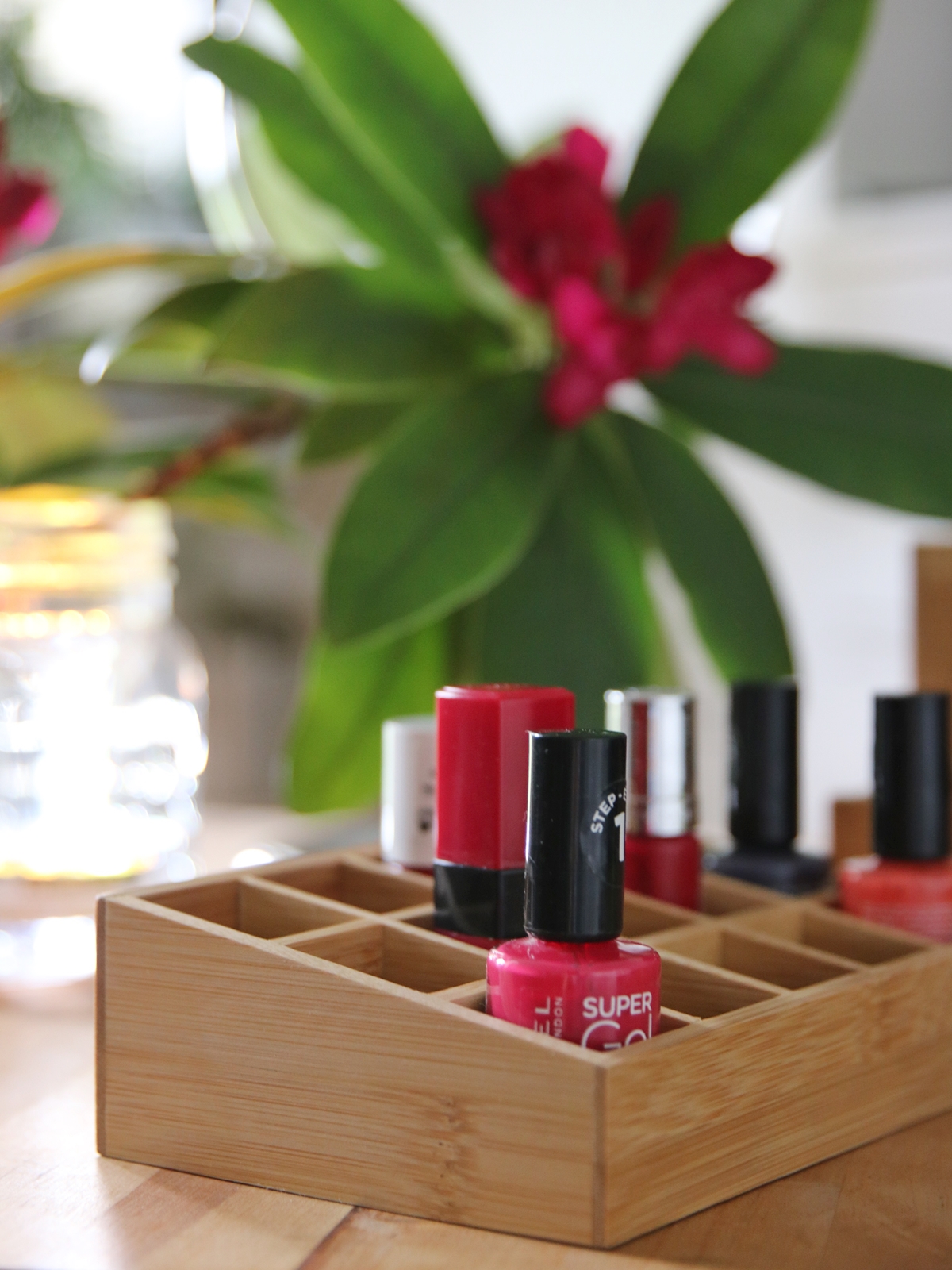 BAMBUSOWE pudełko ORGANIZER pojemnik na KOSMETYKI z 15 przegródkami