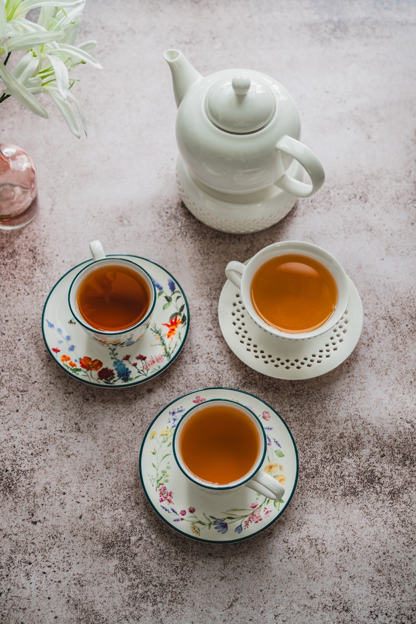 Dzbanek posiada podwójne sitko wewnętrzne przy szyjce czajnika – innowacyjne rozwiązanie, które zatrzymuje drobinki herbaty podczas nalewania naparu do filiżanki.