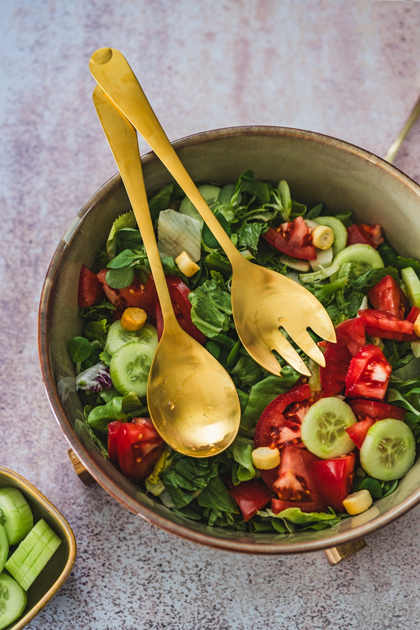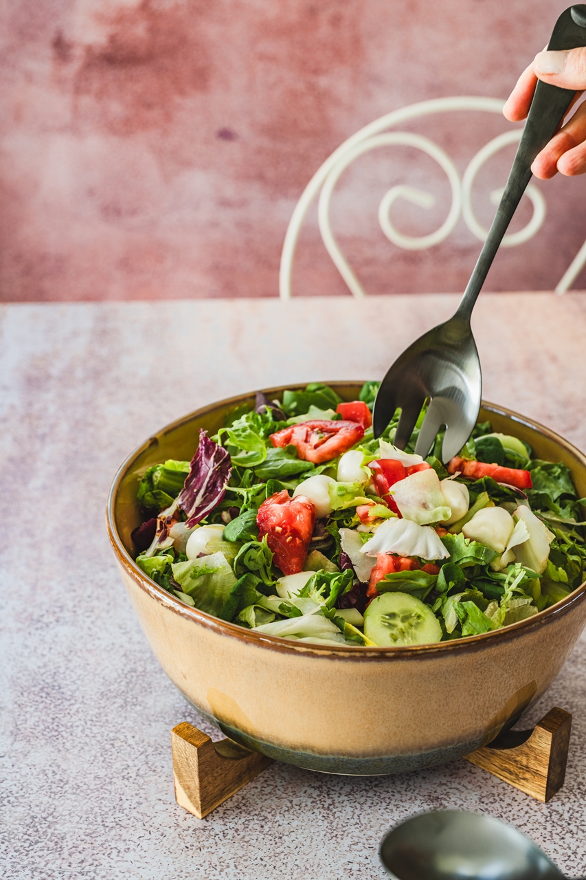 This spacious bowl is perfect for serving salads, pasta, one-pot dishes or fresh fruit. The wooden base protects surfaces from heat and highlights the natural, rustic character of the set, adding a touch of style. An excellent choice for both everyday use and special occasions.