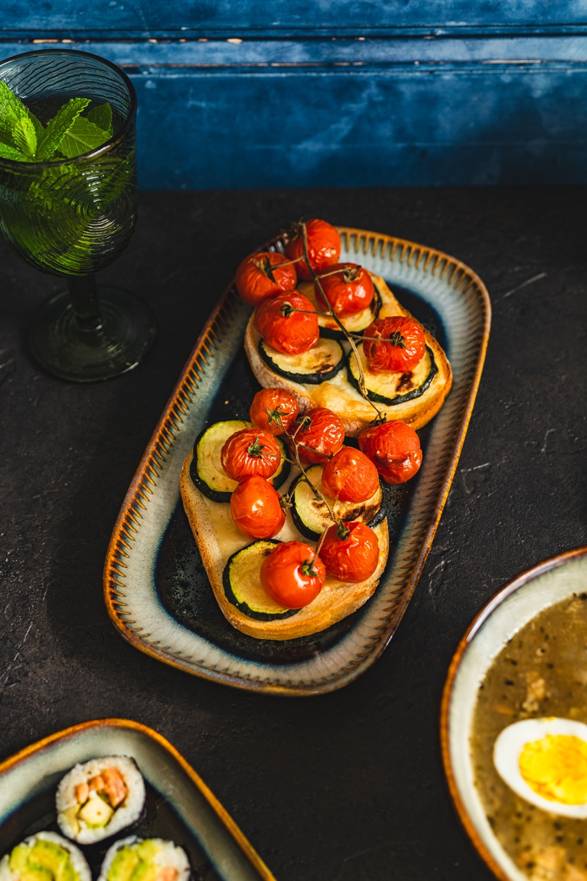The OMBRES line is a unique collection of ceramics available in various colors, ideal for baking, roasting, and serving dishes. Each product in this series features a unique appearance, as no two items are identical. Thanks to a special coloring technique, the colors blend harmoniously, creating a striking mosaic effect. The OMBRES collection includes a variety of products that combine aesthetics with functionality, making them suitable for use in both the oven and microwave. The products are available in a mix of colors such as green, dark green, and navy blue, giving them a distinctive character that complements any kitchen.