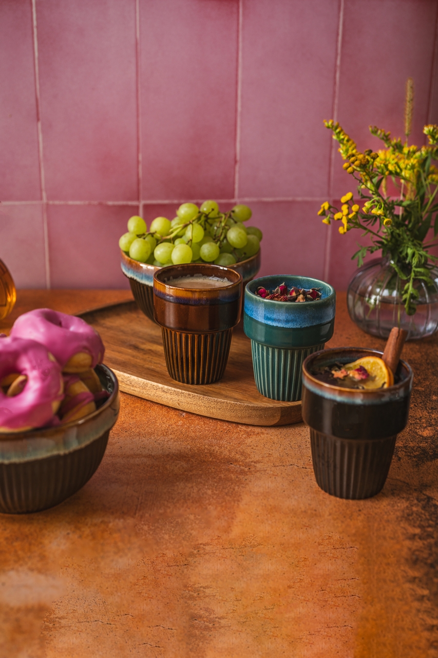 Kubek z linii RIB wyróżnia się oryginalnym, niecodziennym designem, co nadaje mu wyjątkowego charakteru. Dostępny w trzech kolorach do wyboru, sprawdzi się zarówno w codziennym użytkowaniu, jak i nietypowy element dekoracyjny na stole. Idealny do kawy, herbaty czy innych ulubionych napojów. Wyjątkowy kształt pozwala na wygodną organizację w szafkach.