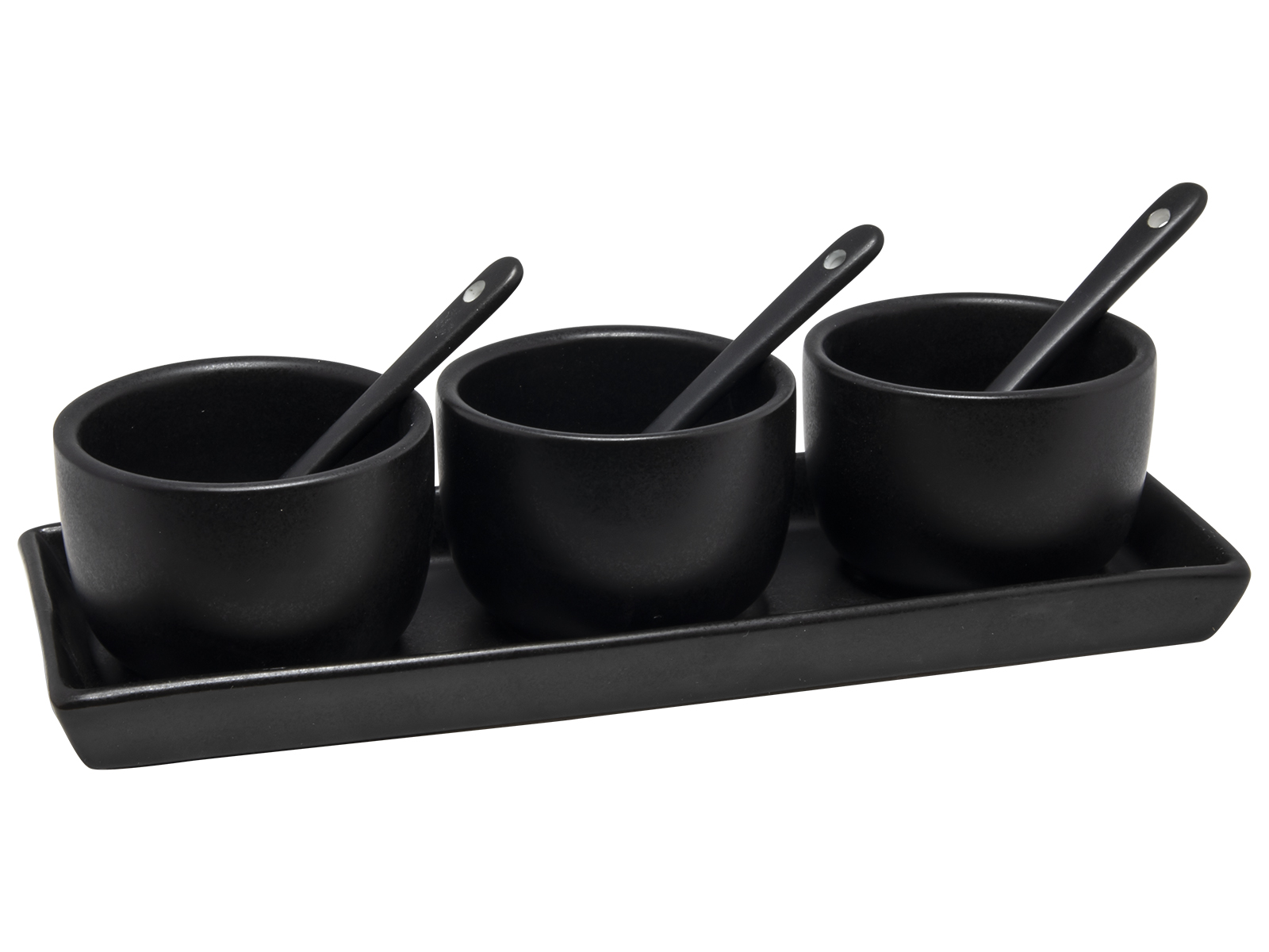 An excellent solution for any sauce and dip enthusiast, our ceramic serving set is the perfect accessory for your table. It includes three bowls placed on a sleek ceramic base, which facilitates serving and presentation. This set integrates seamlessly with your table setting, maintaining an elegant and modern design without disrupting the overall look. The combination of simplicity and functionality makes it both stylish and practical for any occasion.