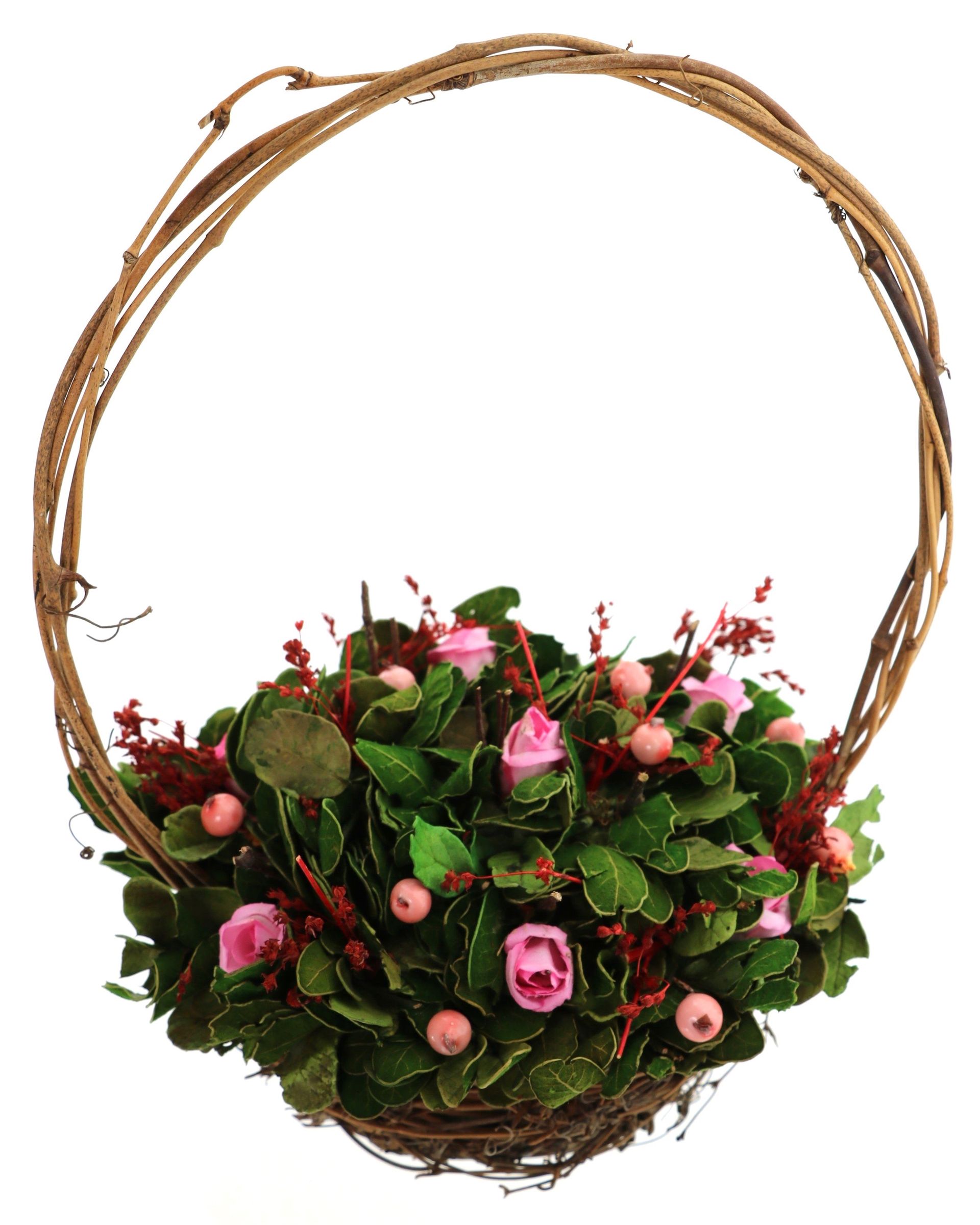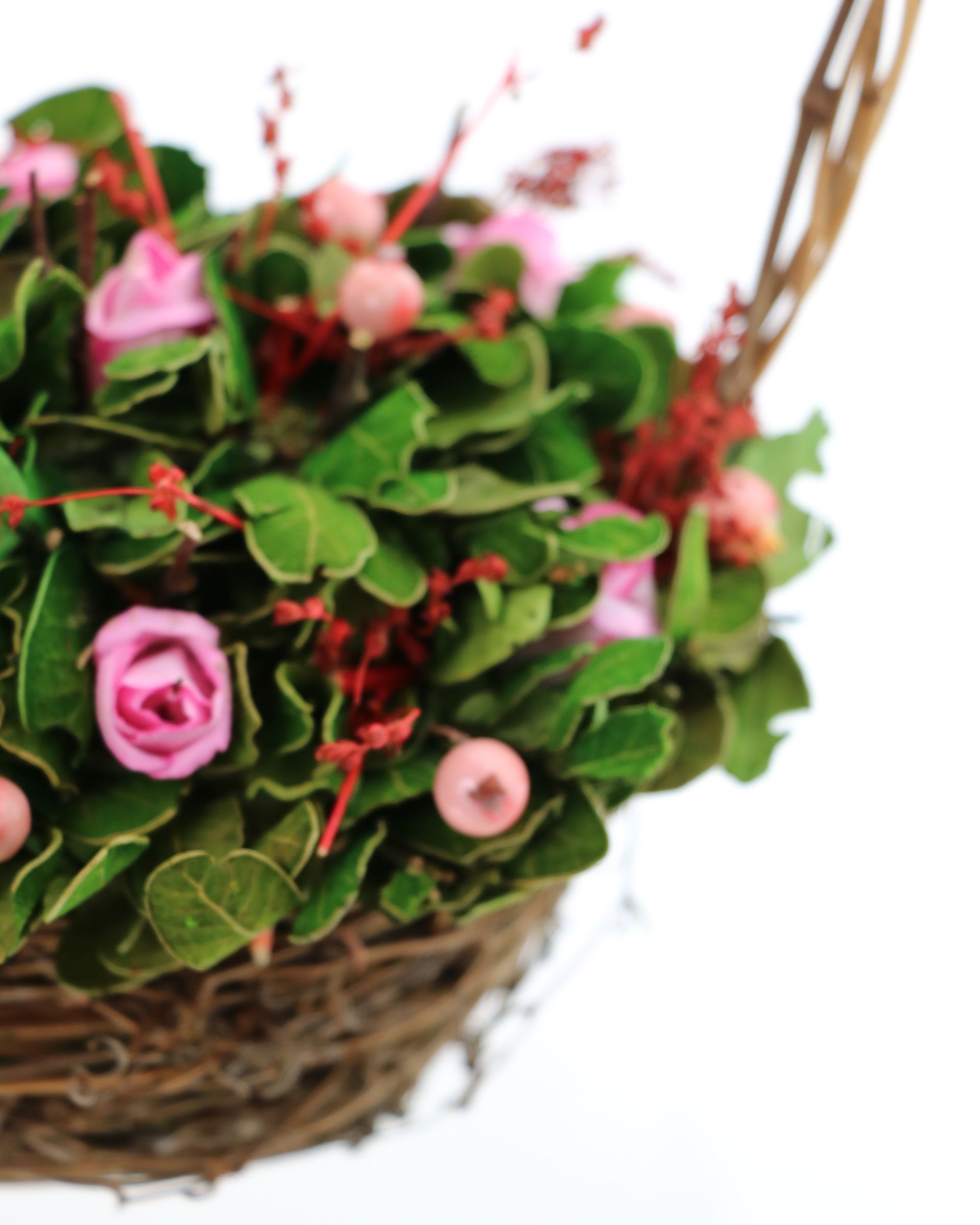 Dimensions: Height of the basket with roses: 28-29 cm, Dimensions of the basket: 20×14 cm