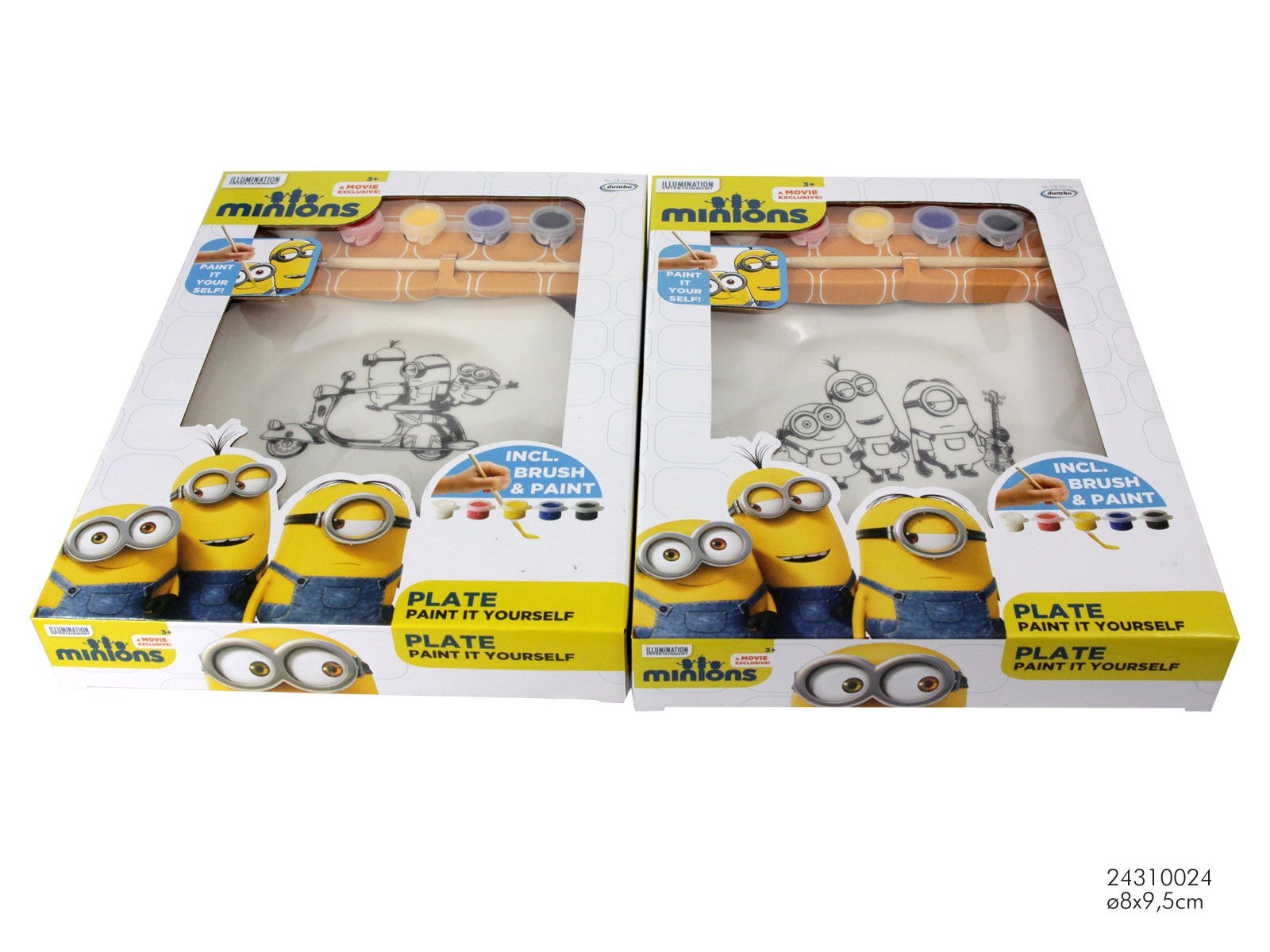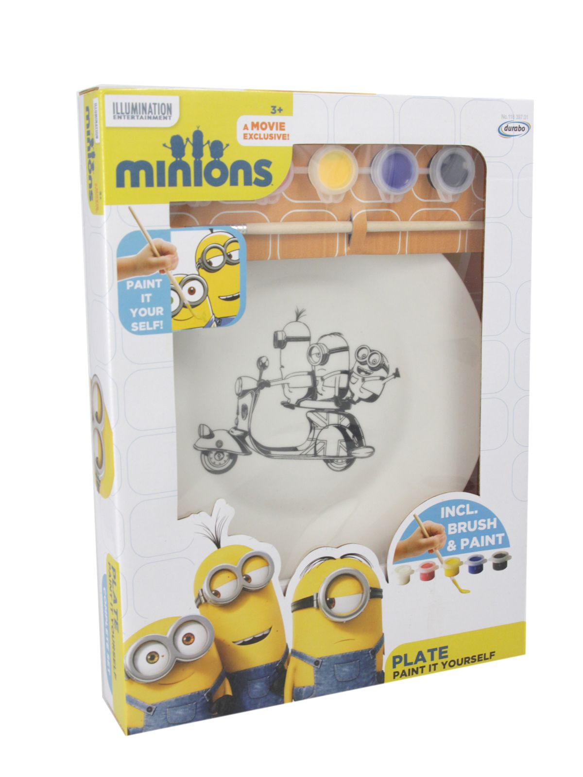 Porcelain white plate, white colour with interesting MINIONS design – very trendy.
