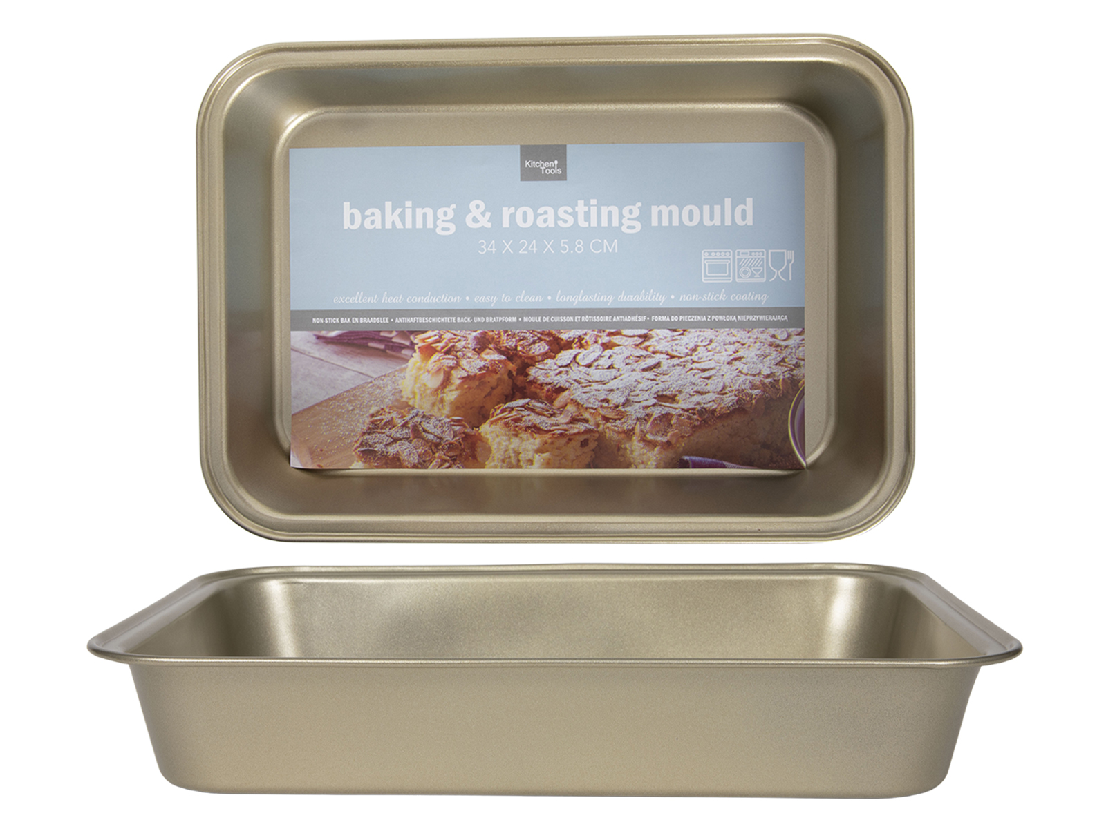 BLACHA forma do pieczenia ciasta PROSTOKĄTNA duża 34×24 cm ZŁOTA