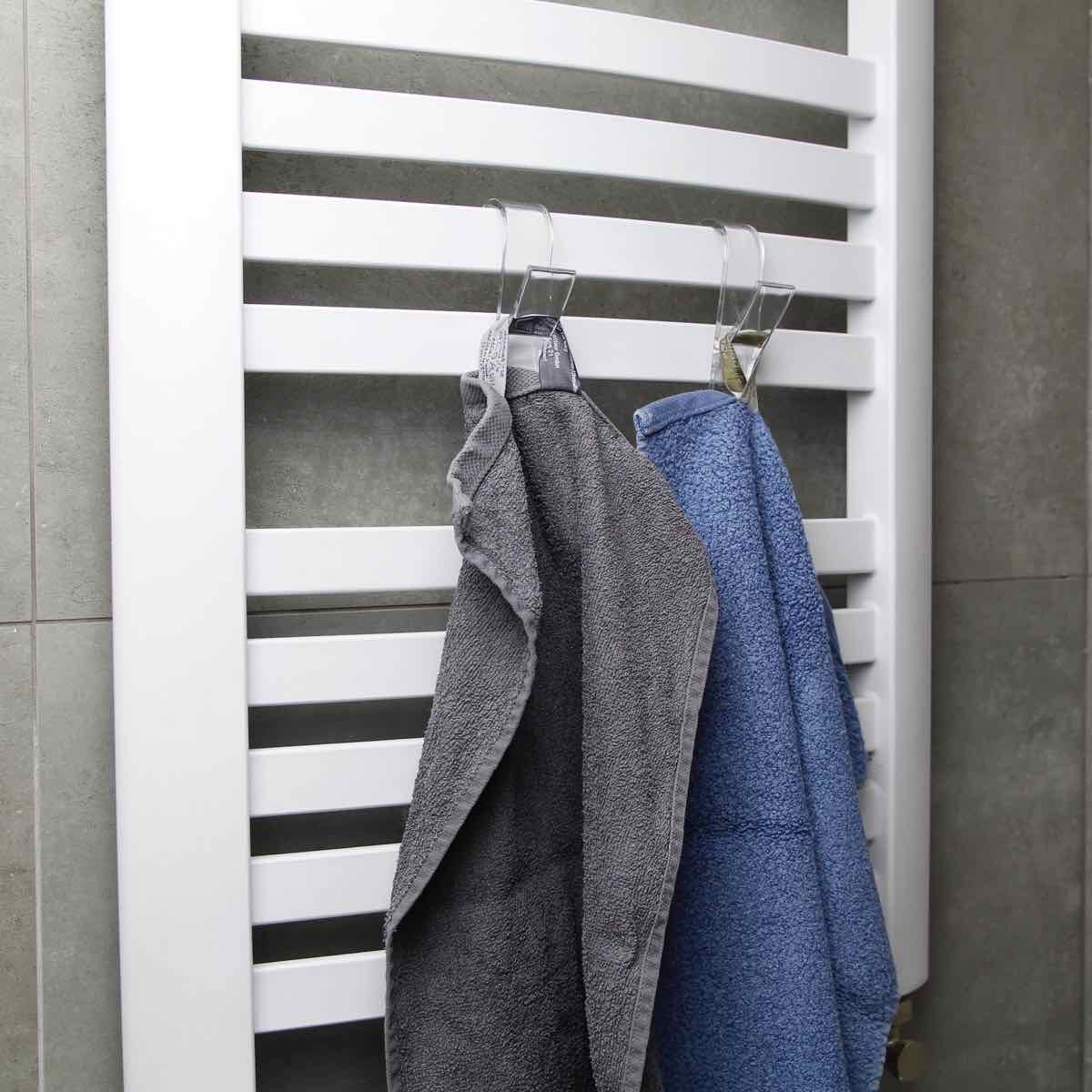 Ideal for bathroom radiators with a 'ladder’ design, these hooks offer a quick and easy installation without the need for drilling or gluing.