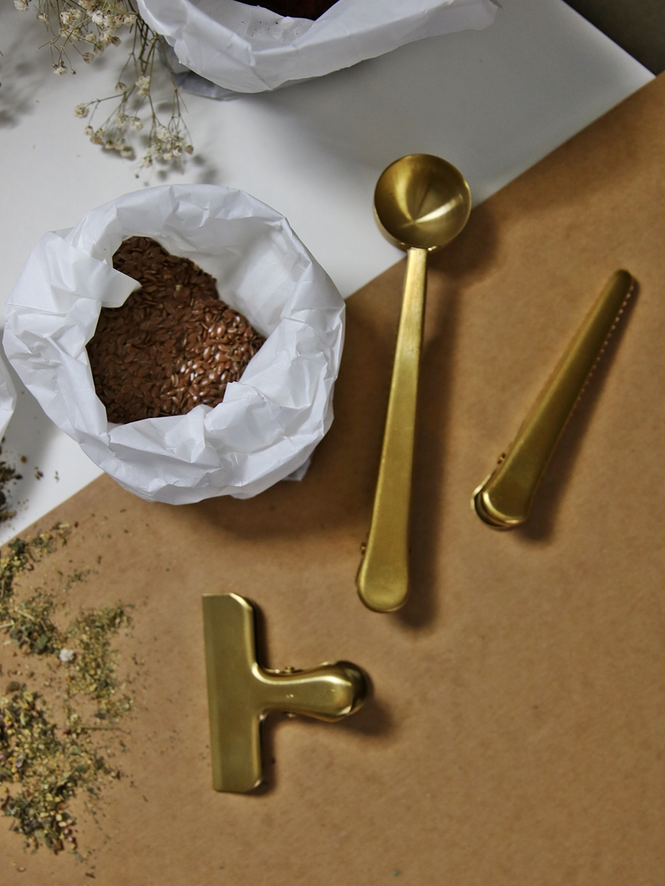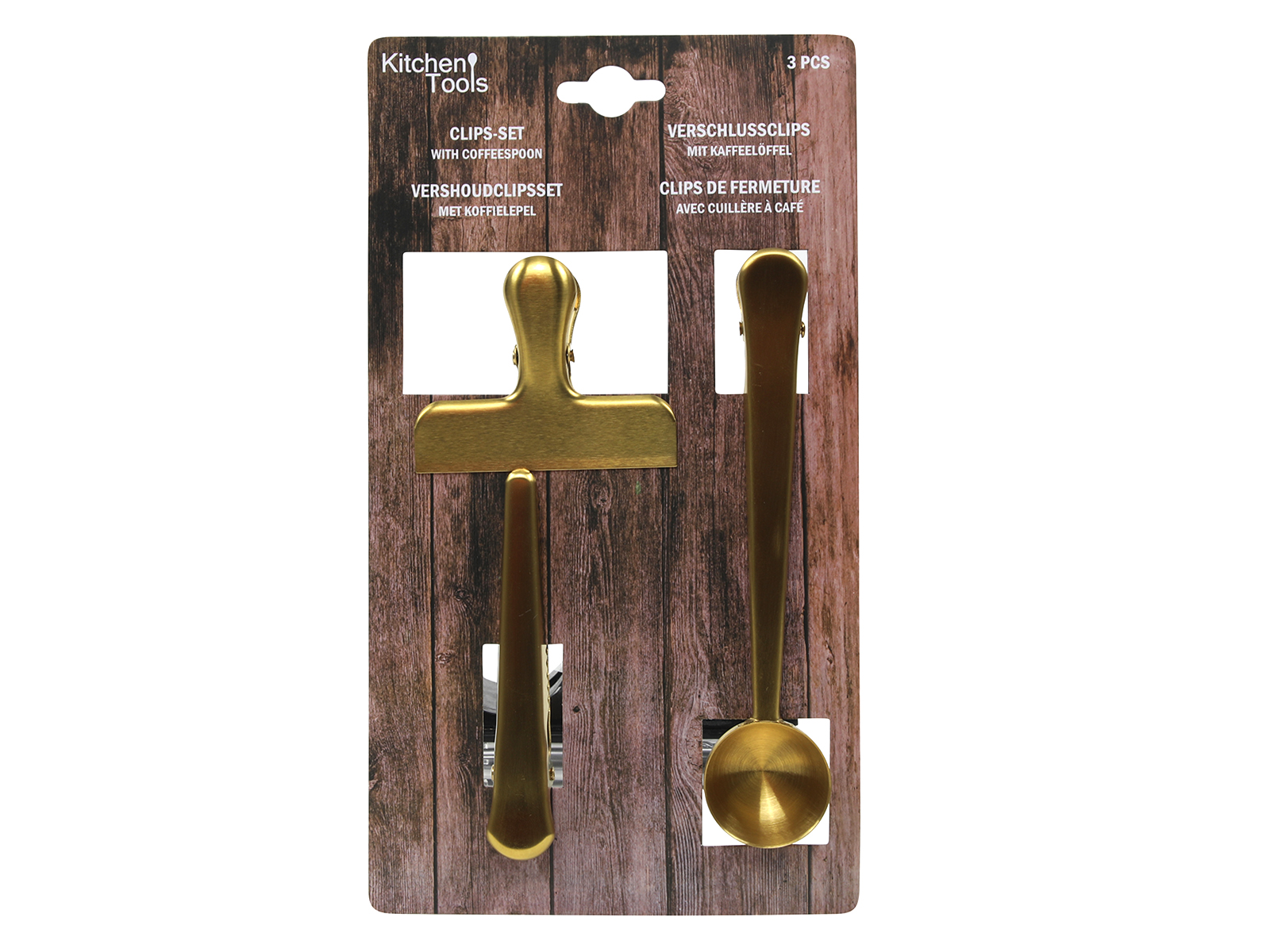 Golden Coffee Set: Clips and Measuring Spoon – 3 Pieces