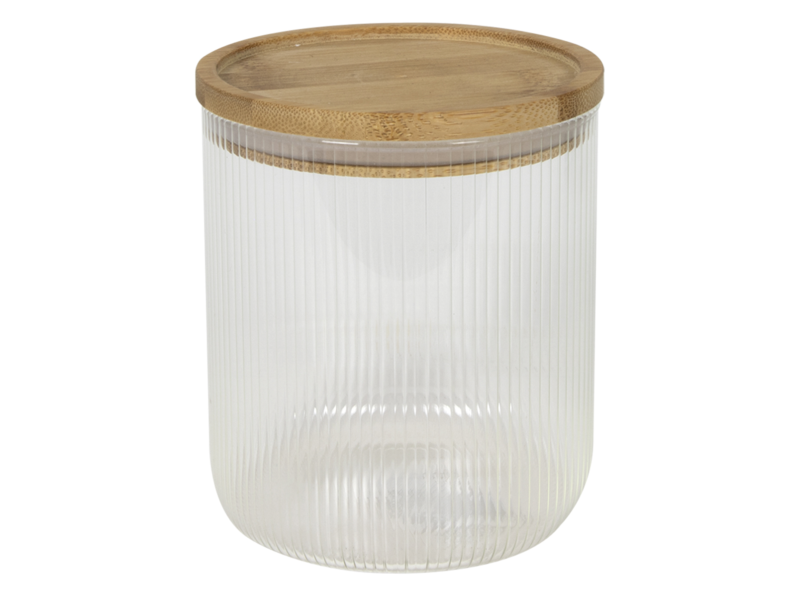Glass Jar with Ribbed Texture and Bamboo Lid