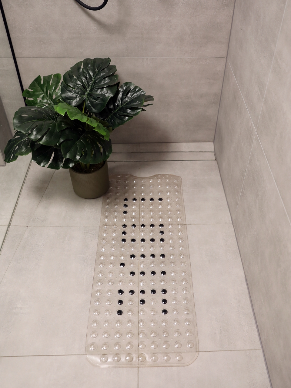 – strong Suction Cups: The mat is equipped with numerous, strong suction cups that effectively attach it to the smooth surface of the bathtub or shower tray. This prevents the mat from moving during use, ensuring stability and safety.