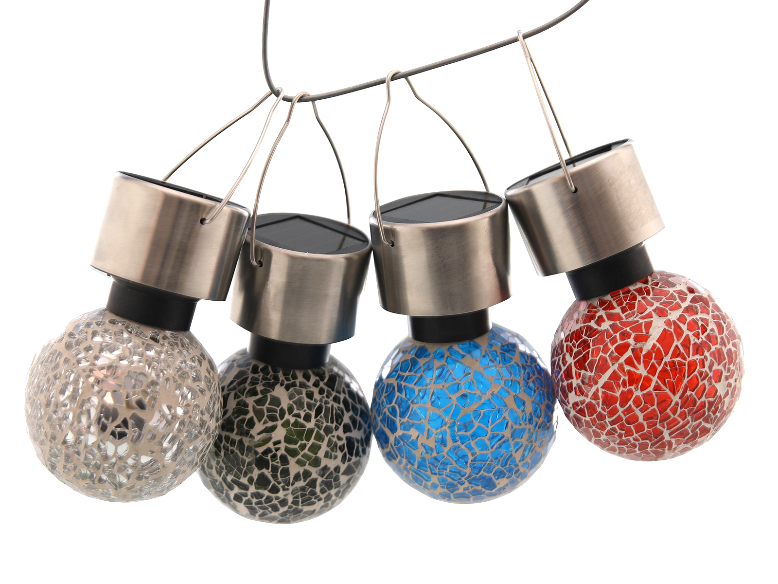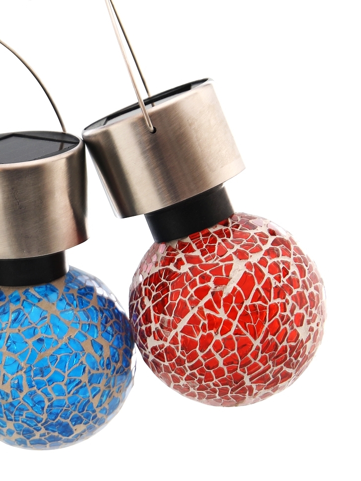 Unique mosaic-style solar lamp with cracked glass effect available in 4 color variants: silver, black, blue, red.