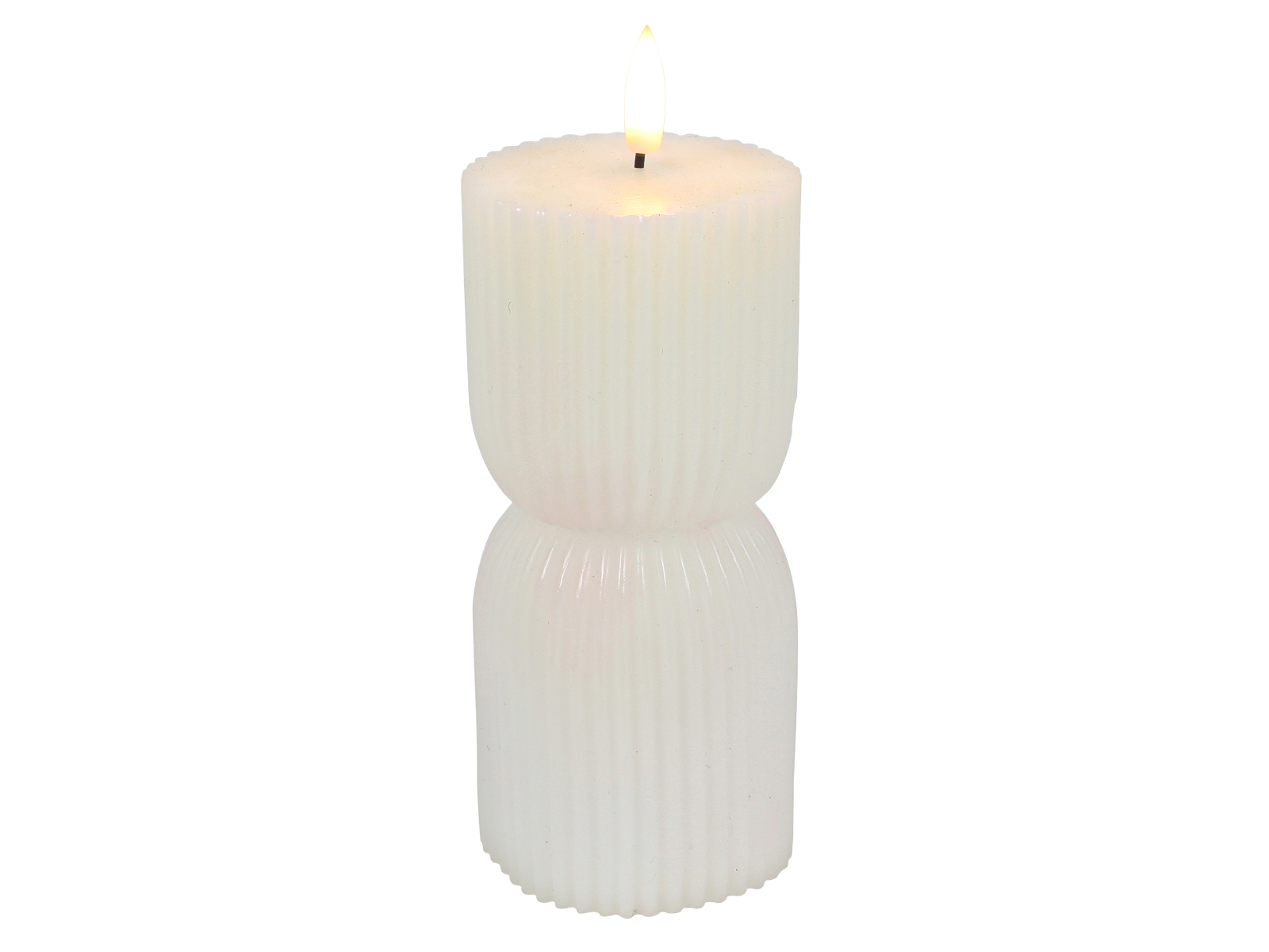 A stylish LED candle in white with an elegant ribbed finish, perfect for creating a warm and cozy atmosphere. The LED technology ensures safe use – no smoke, no open flame, while realistically imitating the flicker of a natural candle. Ideal as a table centerpiece, sideboard decoration, or part of festive arrangements.