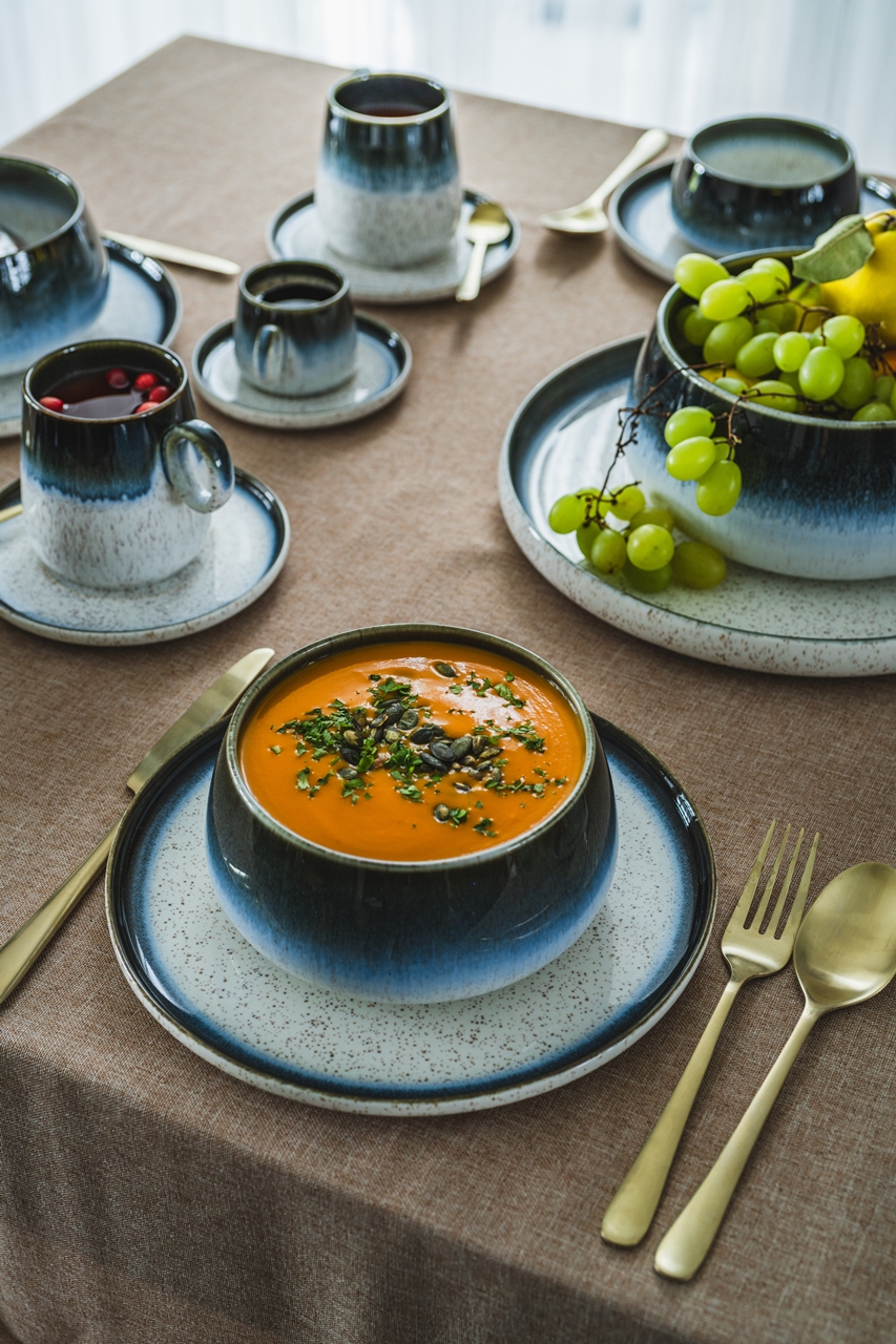 The LUNA LINE bowl is a perfect blend of functionality, natural beauty, and subtle elegance inspired by the soft glow of the moon. Crafted from high-quality glazed ceramic, it delights with its gentle gradient of colors – from deep graphite along the rim to soft, milky tones at the base. Fine speckling and hand-finishing give it an organic, one-of-a-kind character.