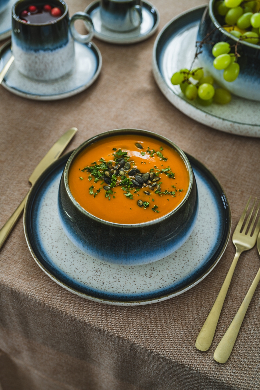 Miska o średnicy 16 cm ma łagodnie zaokrąglony, obły kształt, który łączy estetykę z wygodą użytkowania. To naczynie, które równie dobrze prezentuje się na codziennym stole, jak i w eleganckiej, nastrojowej aranżacji.