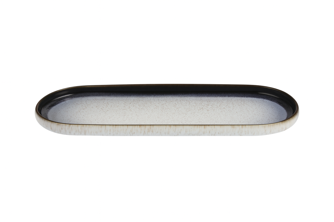 Podłużny talerz z kolekcji LUNA LINE to połączenie funkcjonalności, nowoczesnej prostoty i naturalnego piękna inspirowanego blaskiem księżyca. Wykonany z wysokiej jakości ceramiki szkliwionej, zachwyca subtelnym przejściem kolorystycznym – od głębokiego grafitu na krawędziach po jasne, mleczne tony wewnątrz naczynia. Drobne, delikatne nakrapianie nadaje mu organicznego, unikalnego charakteru.