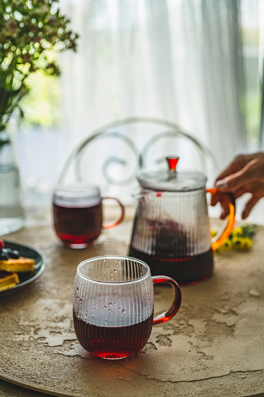 Made from borosilicate glass, which is resistant to high temperatures. The advantage of borosilicate glass is its greater resistance to scratches and damage compared to traditional glass. Perfect for hot and cold drinks, it will be ideal for any time of year. The stripe texture on the glass is sure to impress visitors and family members.