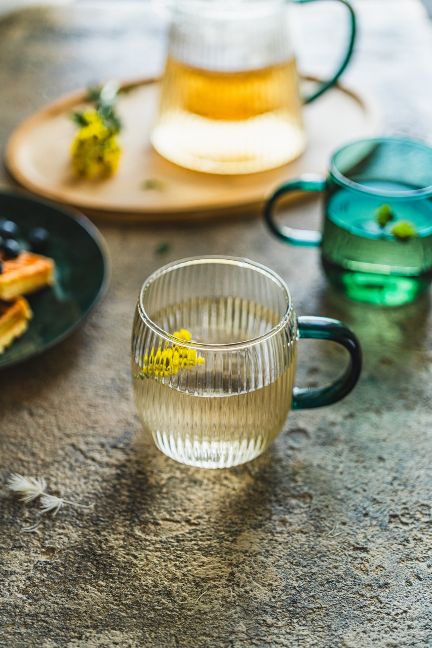 Made from borosilicate glass, which is resistant to high temperatures. The advantage of borosilicate glass is its greater resistance to scratches and damage compared to traditional glass. Perfect for hot and cold drinks, it will be ideal for any time of year. The stripe texture on the glass is sure to impress visitors and family members.