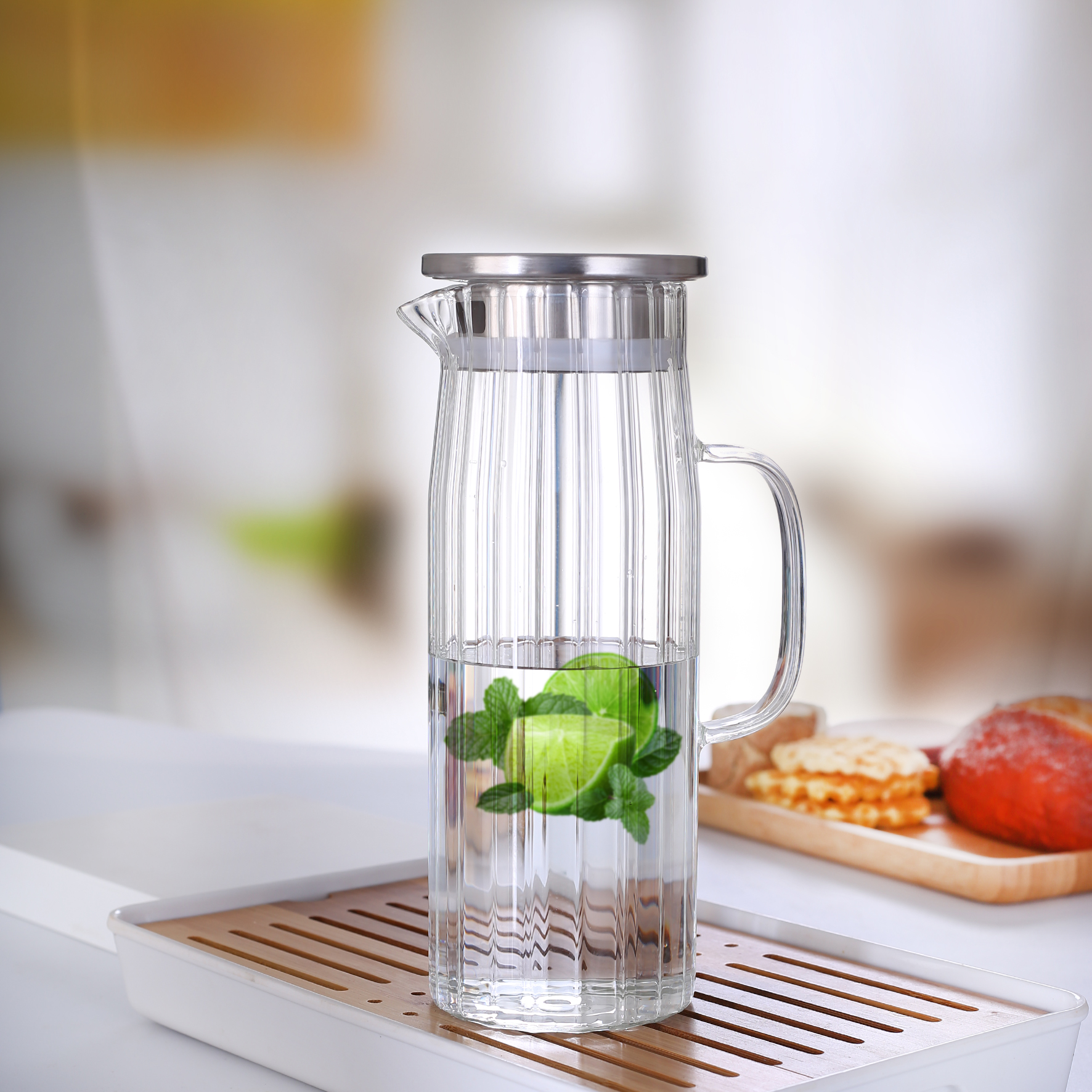 An elegant and practical pitcher made from high-quality borosilicate glass with a stainless steel lid.