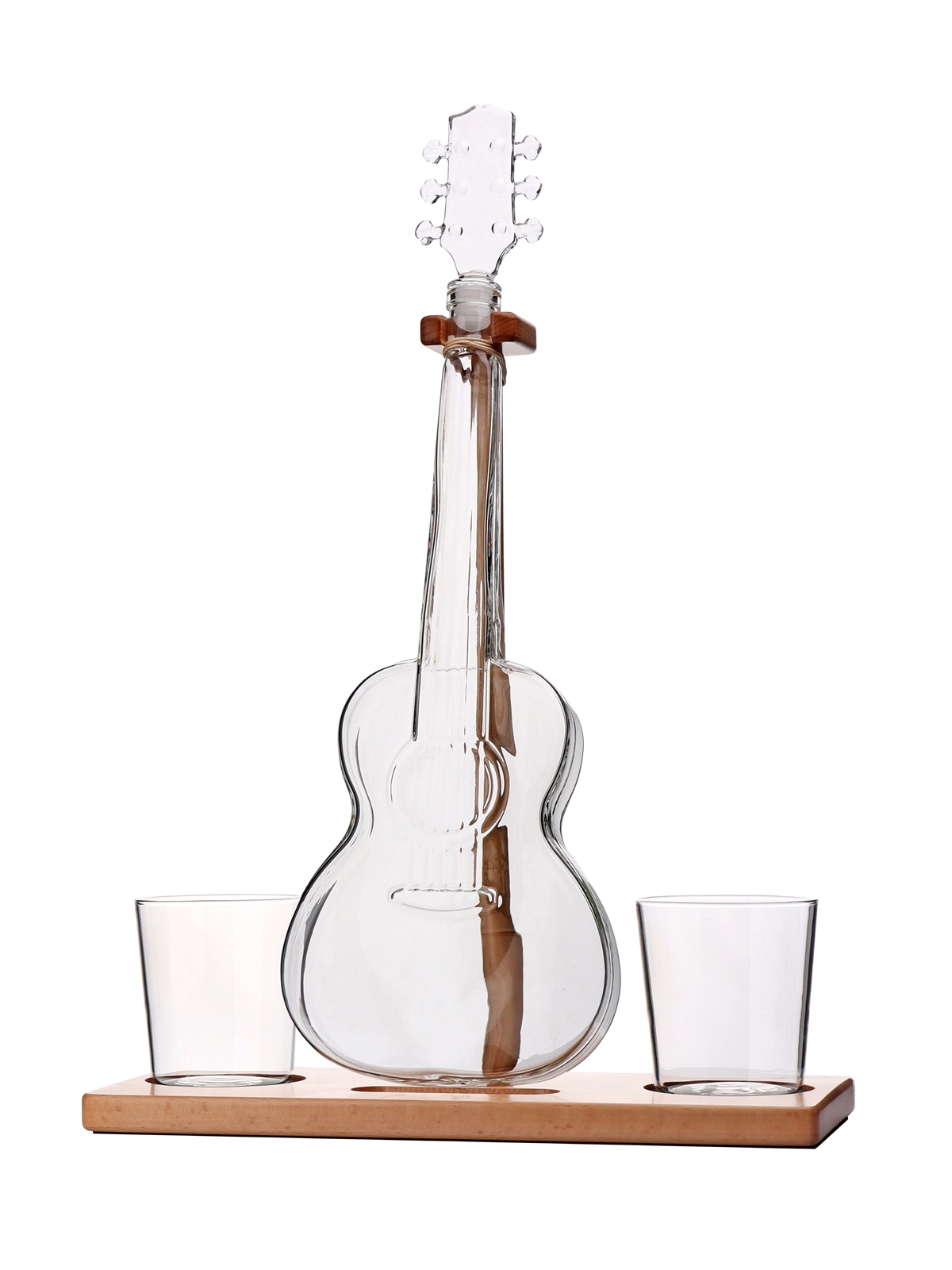 Glass Decanter GUITAR on Stand with 2 Glasses