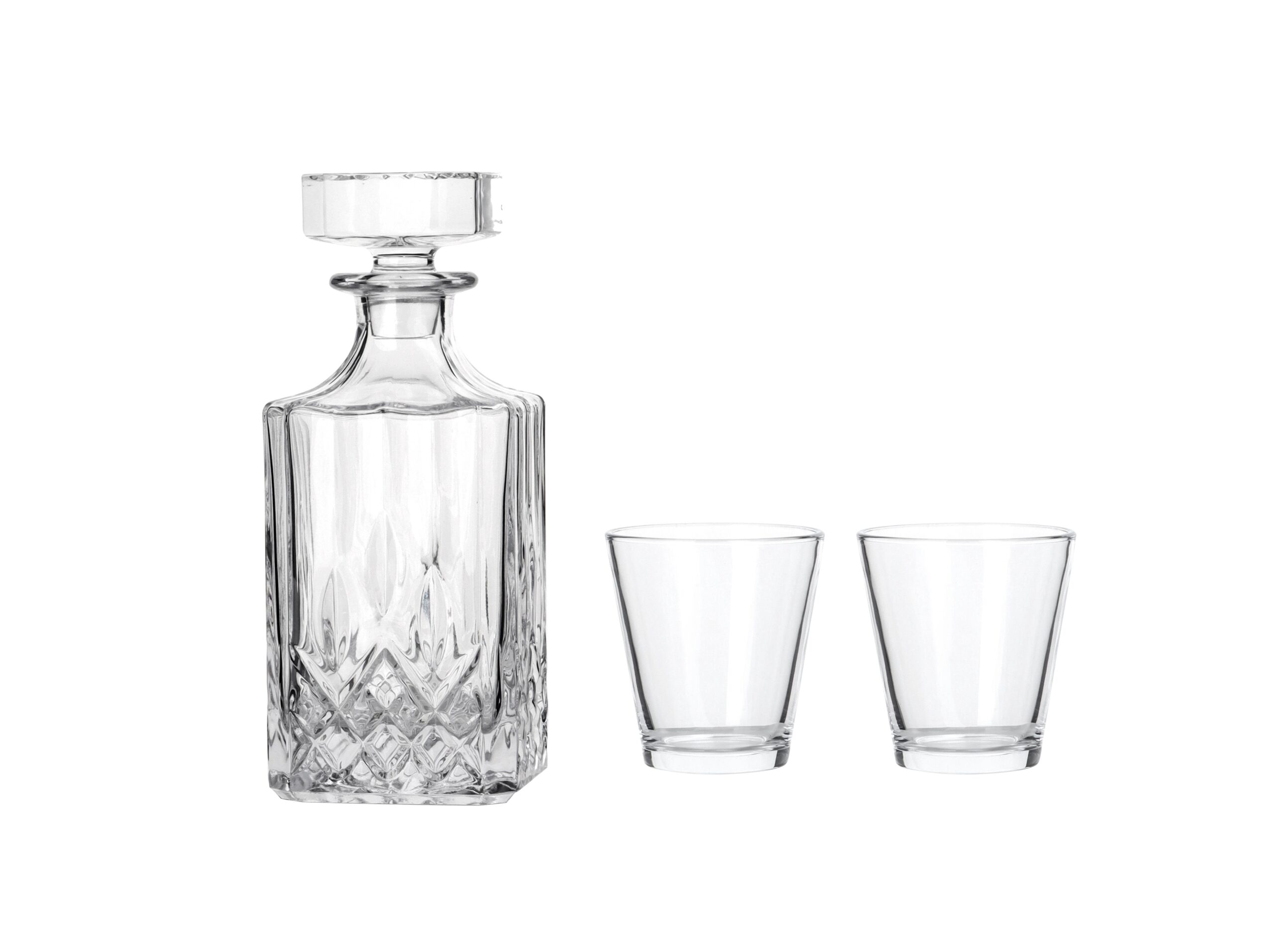 MPL Szklana karafka na stojaku AUTO klasyk BEŻ MPL Glass decanter CAR classic BEIGE with glasses