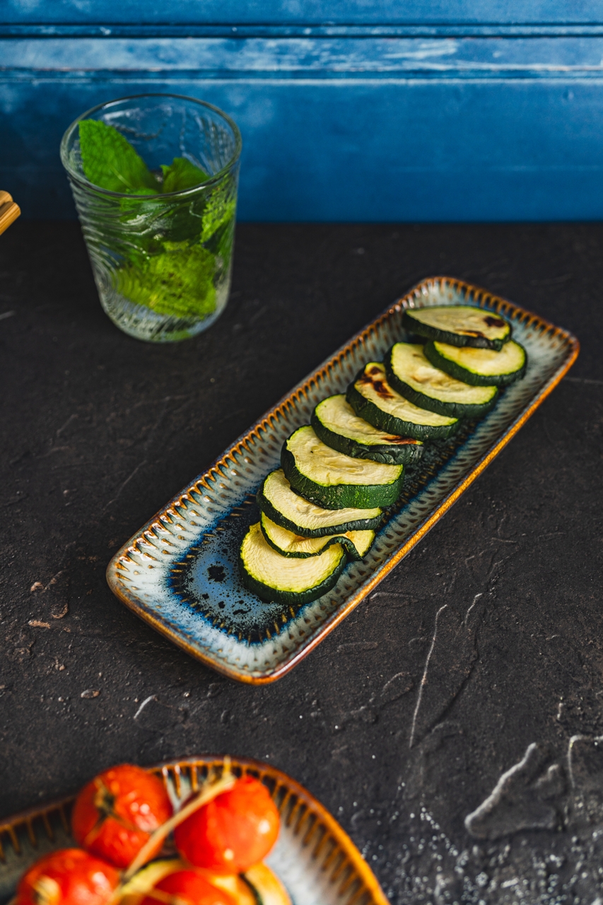 OMBRES polmisek prostokatny dlugi ZIELONO SZARY OMBRES line rectanguar long dish 25cm GREEN GREY