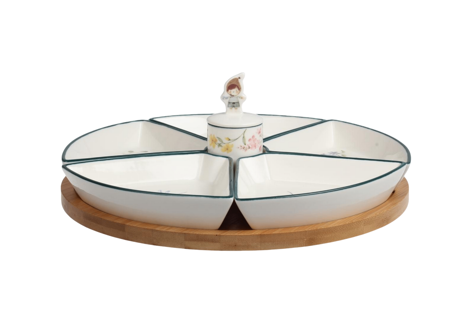 Ceramic Rotating Platter on Bamboo Base 27.5 cm MRS. FLOWER 7 Pieces with a Charming Meadow Motif – Perfect for Celebrating Shared Moments! Create a unique atmosphere during gatherings with loved ones!
