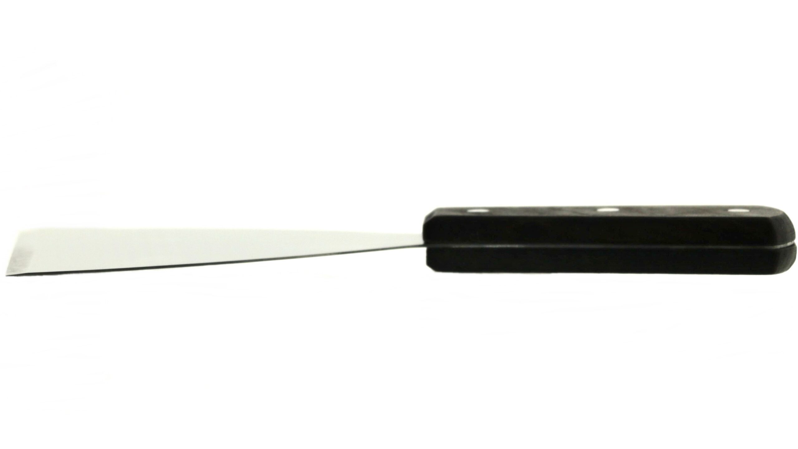 - Wymiary: Długość rączki: 10 cm, Szerokość rączki: 2,5-3,5 cm, Długość stalowej części: 11 cm, Szerokość stalowej części: 2,5-10 cm