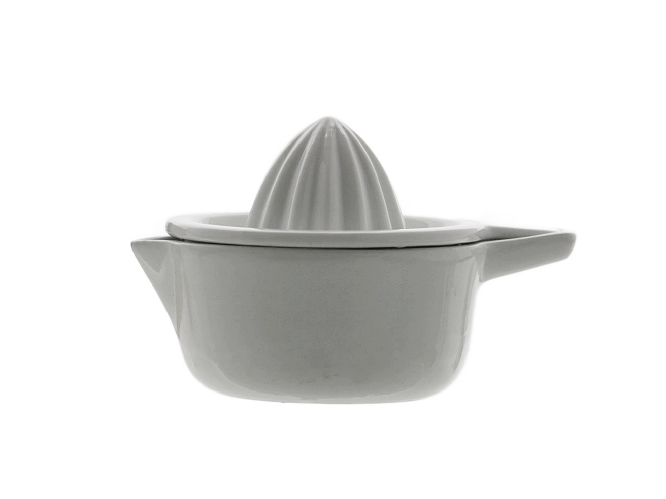 The porcelain citrus juicer is perfect for effectively extracting juice from lemons, limes, or oranges. Its simple design and elegant appearance make it a great addition to any kitchen.