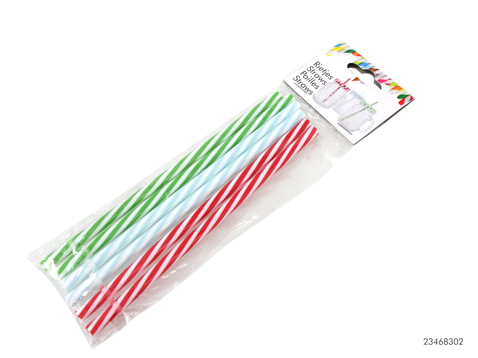 A set of six straws in colorful combinations, perfect for a variety of beverages.