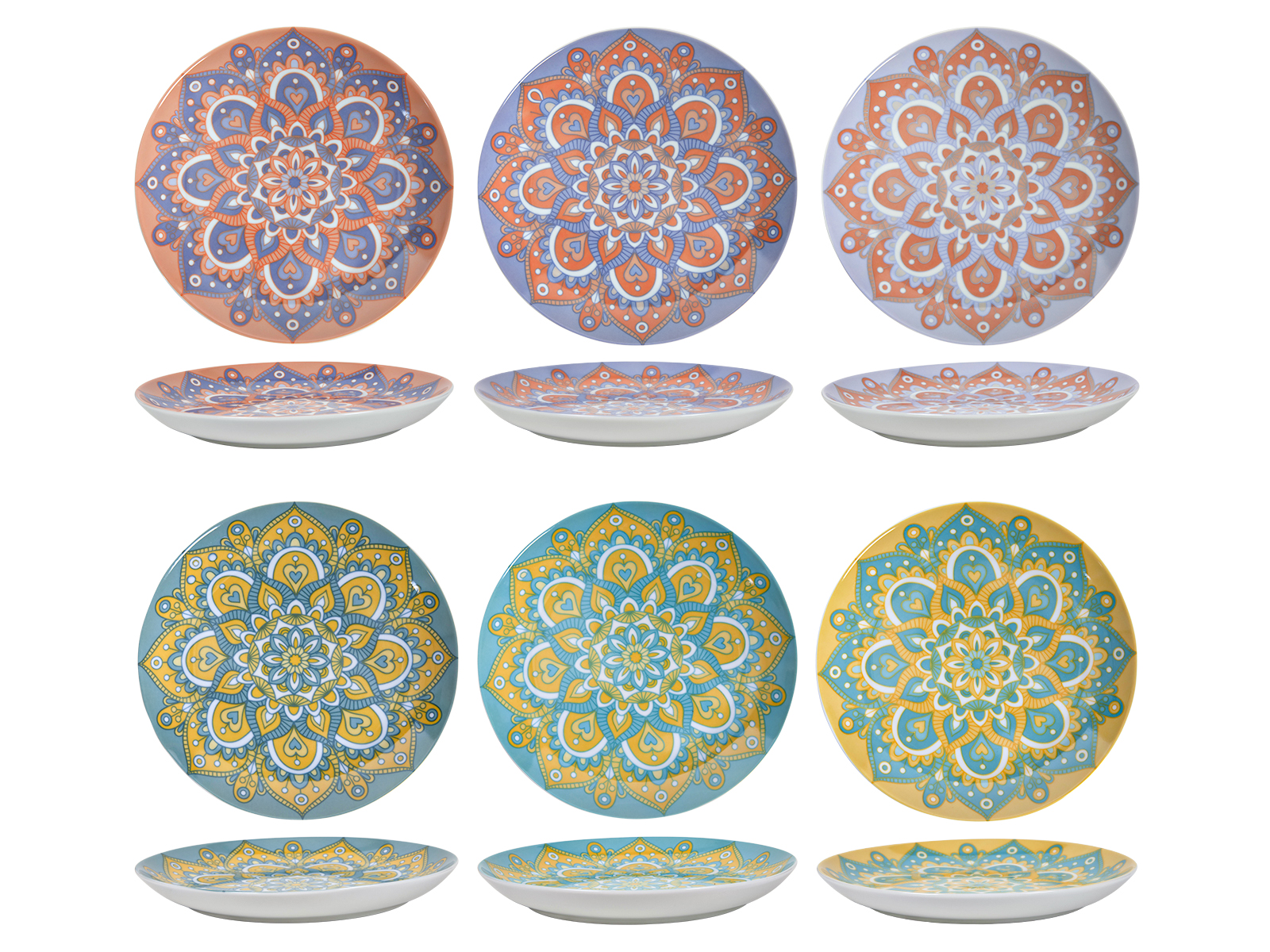 Porcelanowa linia MANDALA talerz gł 21 cm mix 6 wz Porcelain MANDALA line mix plate 21 cm 24324351