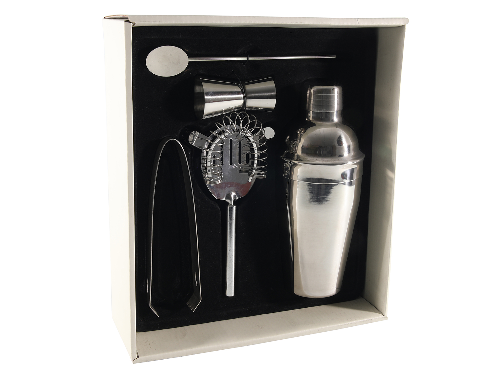 Ten zestaw barmański zawiera wszystkie niezbędne narzędzia do przygotowania profesjonalnych koktajli w domowych warunkach. Idealny dla miłośników miksologii, zestaw składa się z wysokiej jakości shakera, miarki, szczypców do lodu, sitka barmańskiego oraz łyżki barmańskiej.