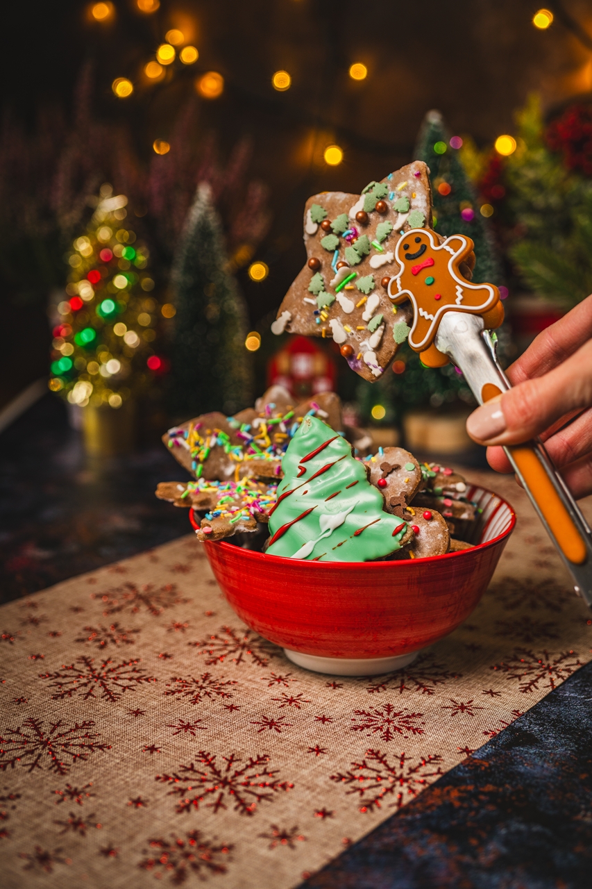 The GINGERMAN kitchen tongs, made of steel and plastic, are perfect for preparing dishes in the kitchen, allowing you to easily grab, serve, and turn food. Their ergonomic design ensures a secure grip, while the festive decorative accent adds a special holiday touch to cooking.