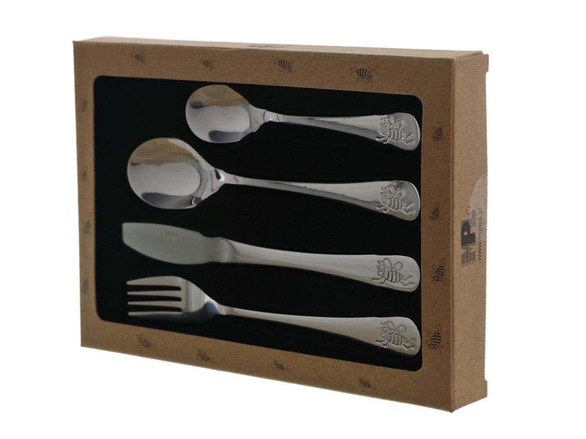 Stalowe sztućce dla dzieci PSZCZÓŁKA zestaw 4 el Cutlery set 4 pcs for children BEES design
