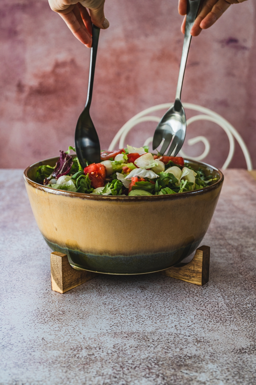 Zestaw stalowych sztućców do sałatek w eleganckim kolorze czarnym matowym to doskonały wybór dla nowoczesnych wnętrz jadalni. Zawiera dwa długie sztućce: łyżkę i widelec, które są idealne do serwowania sałatek. Wykonane ze stali, dodadzą elegancji każdemu posiłkowi.
