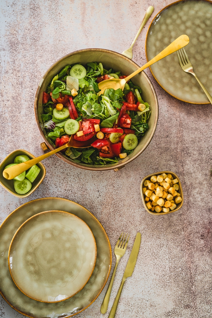 Set of Steel Salad Cutlery, 2 Pieces, Gold Matte