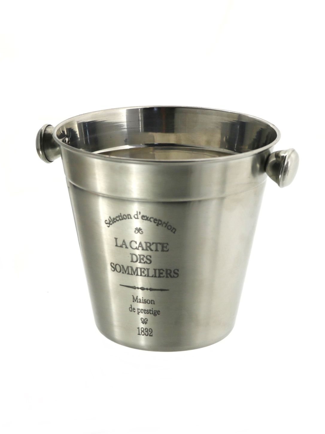 An elegant bucket made of stainless steel. Perfect for serving ice, and its compact size allows it to fit even on the smallest table. Equipped with two comfortable handles for easy carrying.