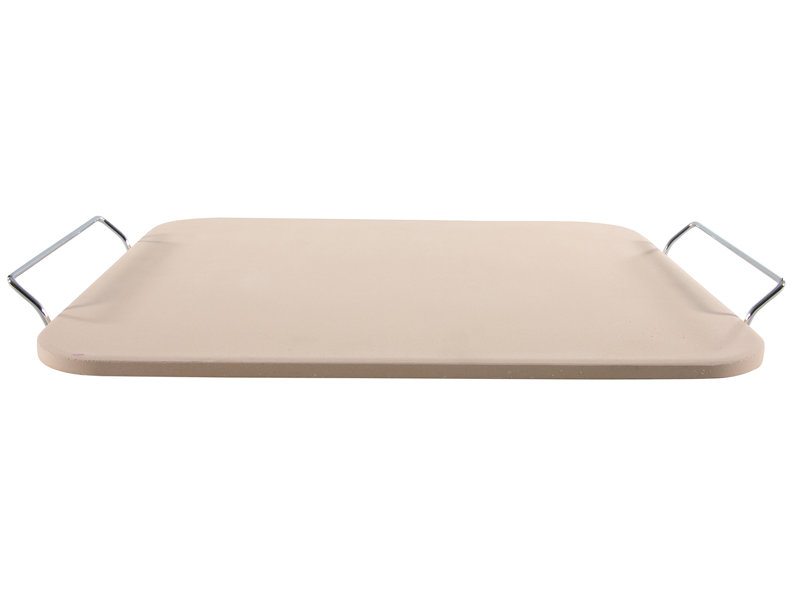 Kamień szamotowy do pieczenia chleba, pizzy oraz domowych bułeczek to niezastąpiony element każdej kuchni. Równomiernie rozprowadza ciepło po powierzchni całej pizzy, jednocześnie pochłaniając wilgoć z ciasta. Dzięki temu ciasto staje się bardziej chrupiące od spodu, nie robiąc się suche na górze. Kamień skutecznie zapobiega przywieraniu pizzy i sprawdza się również przy pieczeniu chleba i ciast. W zestawie znajduje się również stojak, który ułatwia podawanie wypieków.