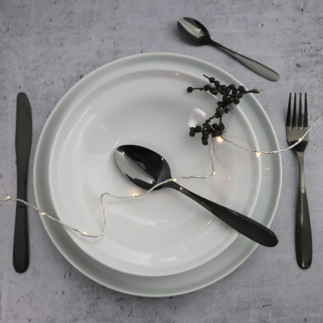 16-elementowy zestaw sztućców ze stali nierdzewnej pokrytych czarną matową powłoką to eleganckie i nowoczesne rozwiązanie do każdej jadalni. Zestaw składa się z 4 noży, 4 łyżek obiadowych, 4 widelców oraz 4 łyżeczek. Sztućce o delikatnym wyglądzie doskonale dopełnią nowoczesne wnętrza kuchni i jadalni.