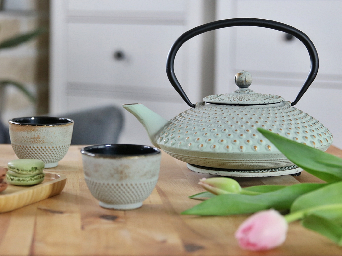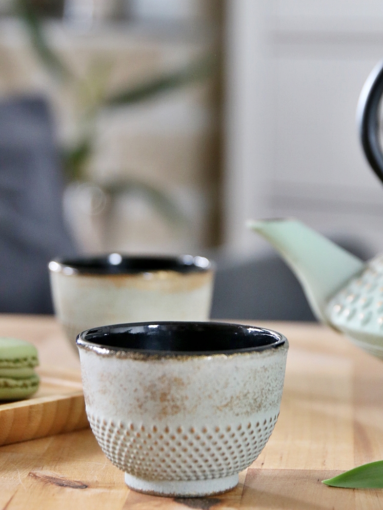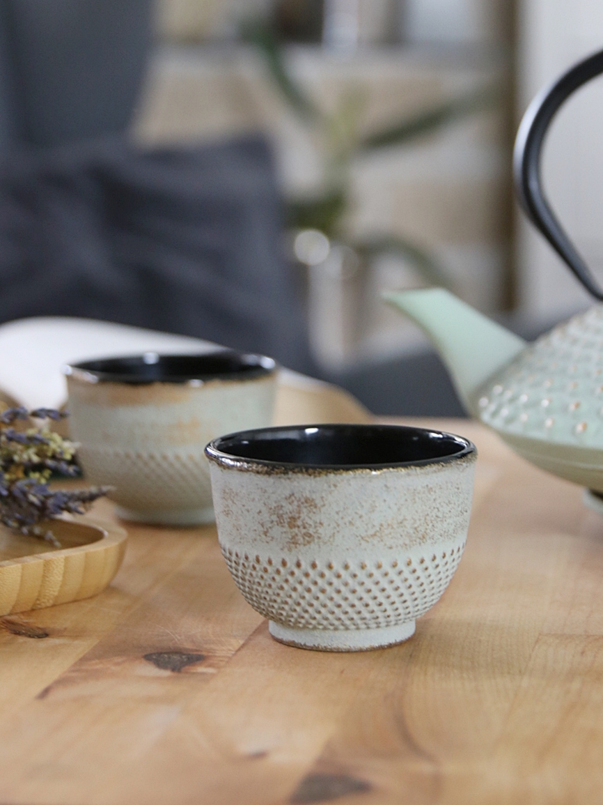 Cast iron cups in Japanese style are making a comeback. Cast iron, known for its excellent heat retention, keeps your tea at a constant temperature for longer. The cups are enameled inside to preserve the flavor and clarity of the drink. They perfectly match the teapot available in our offer.