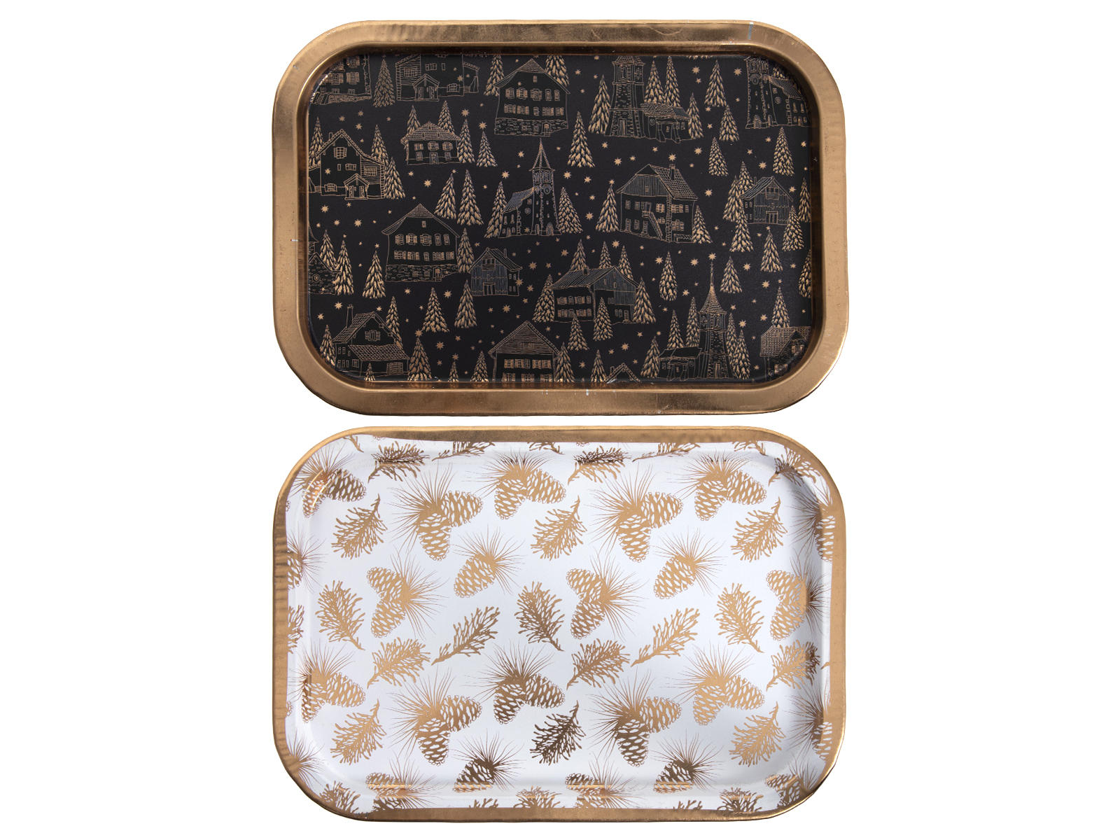 Zimowa taca ZŁOTA 21x14x2 cm MIX B Deco WINTER Tin TRAY GOLD 21x14x2cm MIX B 23465765